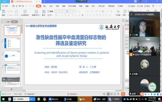 2022年3月16日-17日,延安大學咸陽醫(yī)院2019級神經外科、神經內科、內科專業(yè)組碩士研究生畢業(yè)論文預答辯在科教部二樓會議室順利舉行。我院名譽院長、西北大學醫(yī)學院院長趙鋼教授,眉山心腦血管病醫(yī)院任付先教授,延安大學咸陽醫(yī)院張海濤教授、姚曉峰教授、科研教學管理中心韓曉芳主任、王丙聚教授、慕廷民教授、張維副教授、郭愛紅副教授、賈建厚教授、陳萍副教授、王少君副教授、張桂芳副教授、左梅教授、廉秋芳副教授、王顯利副教授、劉增強副教授、全體碩士研究生及研究生管理科相關人員共30余人參加此次預答辯。本次預答辯由科研教學管理中心韓曉芳主任主持。