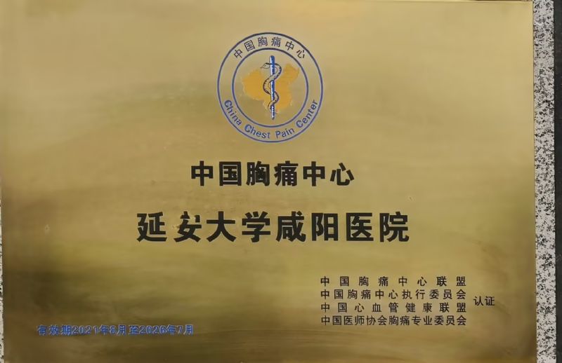 2017年4月6日,中華醫(yī)學(xué)會心血管分會,中國胸痛中心認(rèn)證工作委員會,中國胸痛中心總部公告,延安大學(xué)咸陽醫(yī)院通過2017年第一批中國胸痛中心標(biāo)準(zhǔn)版認(rèn)證。成為陜西省咸陽市首家獲得國家認(rèn)證的胸痛中心。