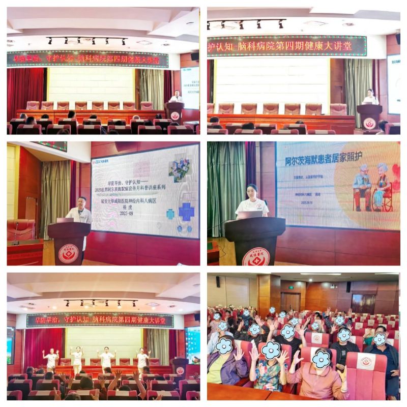 活動(dòng)自啟動(dòng)以來,在腦科病院趙雄飛院長的統(tǒng)籌帶領(lǐng)下,神經(jīng)內(nèi)科六病區(qū)主任趙志茹、神經(jīng)內(nèi)科八病區(qū)主任鞏小英及其醫(yī)護(hù)團(tuán)隊(duì)發(fā)揮專業(yè)優(yōu)勢,深度參與健康知識(shí)普及與服務(wù)工作。9月18日下午,腦科病院舉辦健康大講堂,進(jìn)一步深化科普效果。活動(dòng)中,楊虎副主任醫(yī)師以“認(rèn)識(shí)阿爾茨海默病”為主題,系統(tǒng)講解疾病發(fā)病機(jī)制、早期信號與防治要點(diǎn)。高琦護(hù)士則聚焦“阿爾茨海默病居家照護(hù)”,分享實(shí)用照護(hù)技巧與情緒疏導(dǎo)方法?,F(xiàn)場互動(dòng)環(huán)節(jié),參會(huì)患者及家屬踴躍提問,醫(yī)護(hù)團(tuán)隊(duì)逐一細(xì)致回應(yīng),氛圍熱烈且溫馨,讓“早發(fā)現(xiàn)、早診斷、早干預(yù)”的理念深入人心。