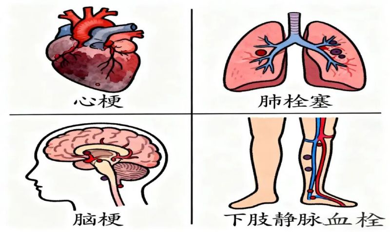 血栓通俗來說就是“血塊”,它就像路障一樣,阻塞血液流通,它會隨血液流到身體的各部位,堵住生命通道,導(dǎo)致相關(guān)臟器沒有血液供應(yīng),造成其缺血或死亡。