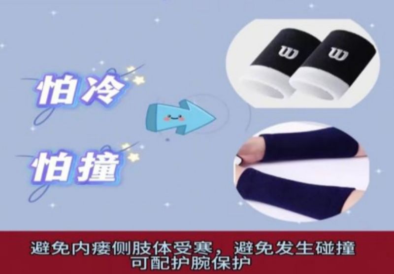 1.日常要注意內(nèi)瘺側(cè)肢體的保暖,可佩戴寬松的棉質(zhì)護腕帶或護肘,避免過緊影響血液循環(huán)。