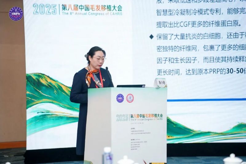 毛發(fā)移植大會(huì)上,陳小艷教授發(fā)表題為《i-PRF聯(lián)合米諾地爾酊治療雄激素性脫發(fā)有效性及安全性觀察》的專題報(bào)告,系統(tǒng)闡述了自體血小板濃縮物治療脫發(fā)的機(jī)制、制備方法、臨床療效、適應(yīng)證、禁忌證及不良反應(yīng)等,為該技術(shù)在規(guī)范臨床應(yīng)用提供了系統(tǒng)指導(dǎo),為脫發(fā)治療提供療效明確的新手段。據(jù)中國(guó)整形美容協(xié)會(huì)毛發(fā)醫(yī)學(xué)分會(huì)2024年數(shù)據(jù)顯示,我國(guó)已經(jīng)有超過(guò)3億的脫發(fā)患者,2025年脫發(fā)治療領(lǐng)域迎來(lái)多項(xiàng)新進(jìn)展,從毛囊再生到長(zhǎng)效藥物,從精準(zhǔn)診斷到微創(chuàng)療法,為部分脫發(fā)患者的治療帶來(lái)新希望。