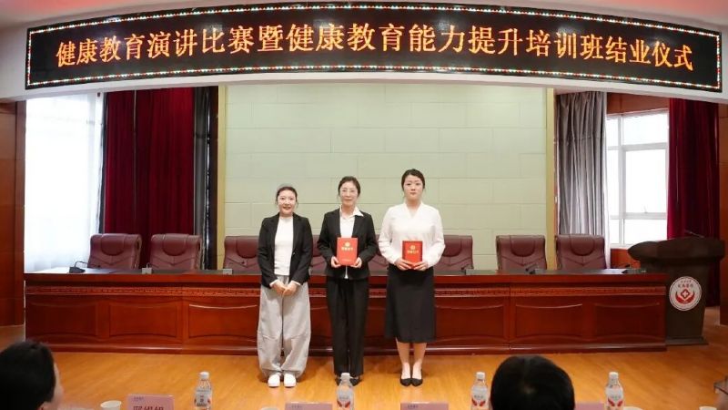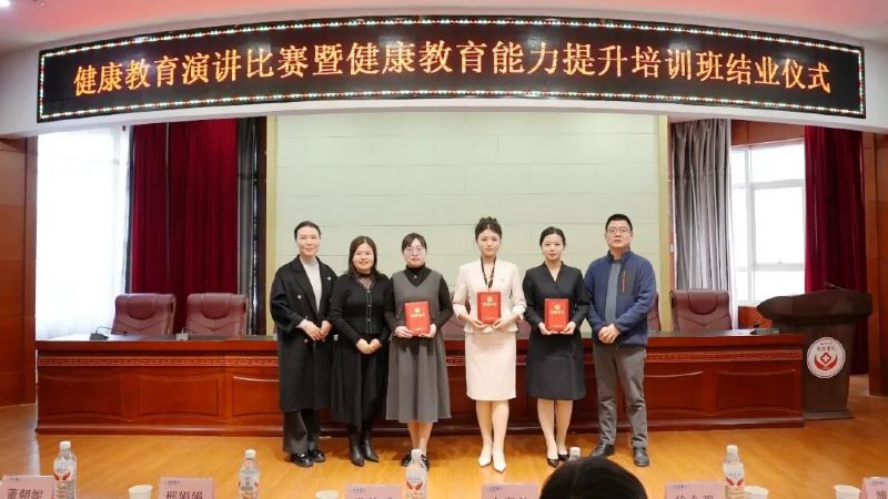 經(jīng)過(guò)激烈角逐與專(zhuān)業(yè)評(píng)審,最終評(píng)選出一等獎(jiǎng)1名、二等獎(jiǎng)2名、三等獎(jiǎng)3名及優(yōu)秀獎(jiǎng)5名。頒獎(jiǎng)典禮上,獲獎(jiǎng)?wù)呤殖謽s譽(yù)證書(shū),臉上綻放著自豪與喜悅的笑容;隨后,健康教育能力提升班工作組為學(xué)員頒發(fā)結(jié)業(yè)證書(shū),學(xué)員代表依次列隊(duì)登臺(tái)領(lǐng)證,現(xiàn)場(chǎng)氛圍莊重而熱烈。