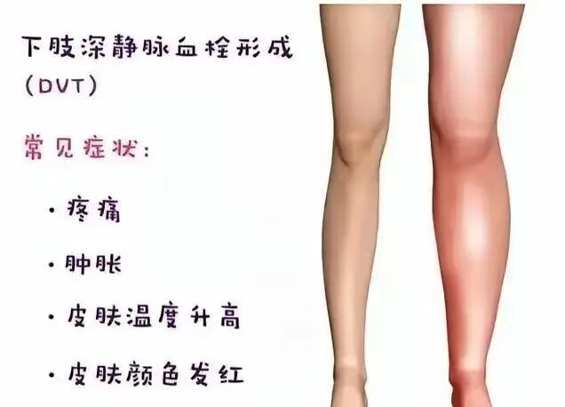 腿上長血栓(深靜脈血栓DVT):最常見的是小腿、大腿脹痛,尤其是按小腿后面或腳踝時更明顯;腿垂著會更脹,抬起來能舒服點的深靜脈里堵了血塊。表現(xiàn)很直觀—一條腿突然腫起來,摸著疼(自覺),皮膚可能發(fā)紅、有點燙(發(fā)青、有點發(fā)涼)。