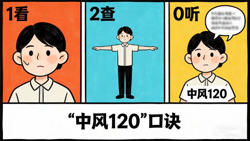 腦梗發(fā)作的黃金救治時(shí)間是6小時(shí)內(nèi),越早治療,后遺癥風(fēng)險(xiǎn)越低!記住“中風(fēng)120”口訣,快速識(shí)別危險(xiǎn)信號(hào):