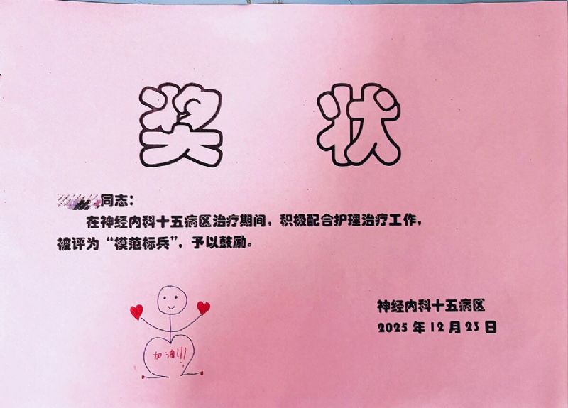 一張獎狀,拉近了醫(yī)護與患者的心,讓“敘事護理”在溫情中點燃康復(fù)信心。這背后,是醫(yī)者與患者共同奔赴的希望。