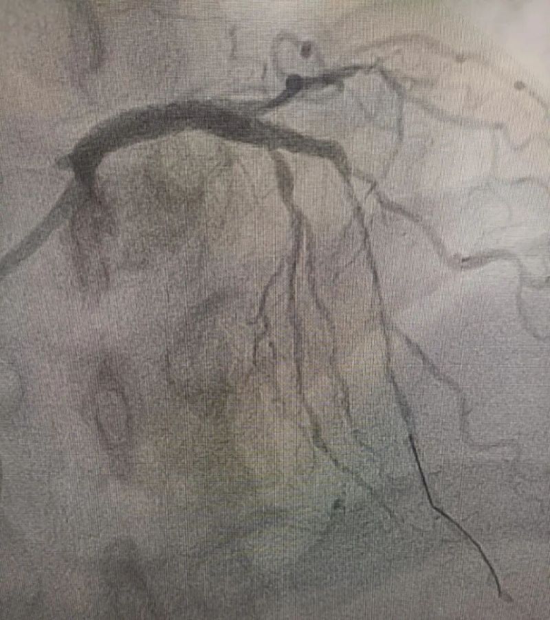 術(shù)中造影顯示,左主干至前降支近段重度狹窄——這正是導(dǎo)致心臟缺血、誘發(fā)室顫的“罪魁禍?zhǔn)住?。主動脈球囊反搏植入、球囊擴張、支架植入......介入團隊精準(zhǔn)操作,一氣呵成。堵塞的血管順利開通,血流重新涌動,這顆一度瀕臨停跳的心臟終于重獲生機。